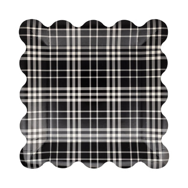 Add a touch of rustic elegance to your table with these 9" Black & White Buffalo Plaid Plates featuring a metallic gold trim. Perfect for weddi...