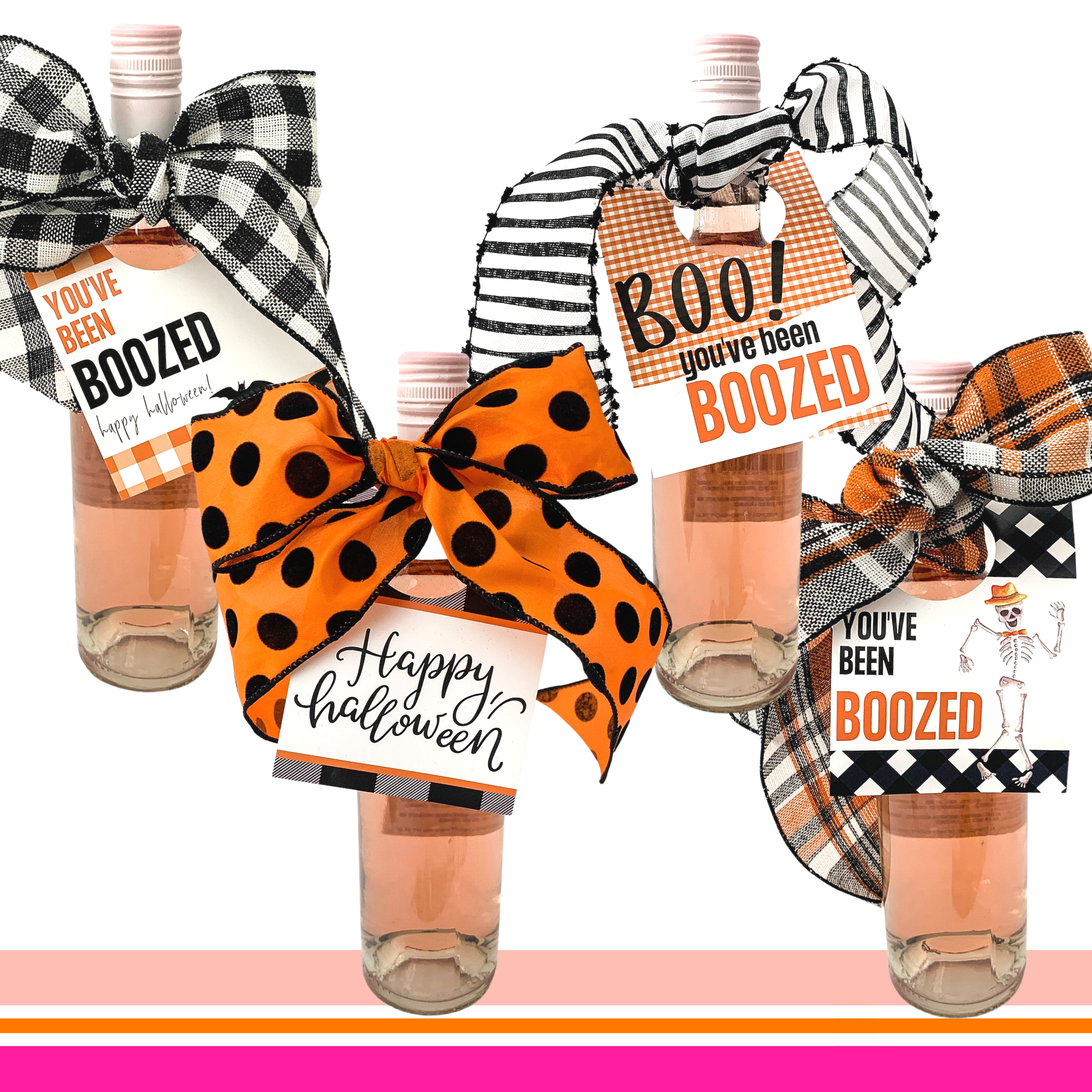 You've Been Boozed Halloween Gift Pack – Fun Wine Tag Set with Ribbons for Neighbors & Hostesses