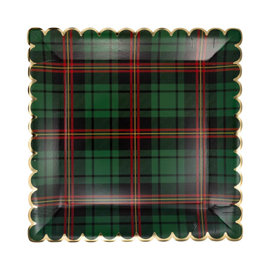 Green & Red Plaid Holiday Square Plates – 9" Christmas Party Dinnerware (8 Pack)