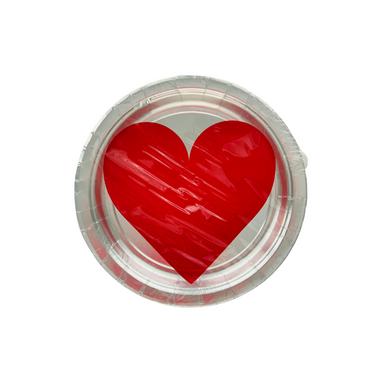 7" VALENTINE'S RED HEART SILVER PAPER PLATE Enjoy your Valentine's Day party with these simple but festive dessert plates featuring a bold red he...