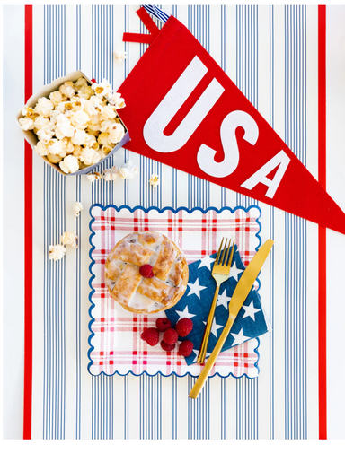 Holiday & Christmas Red White Blue Striped 9" Scalloped Edge Plates Party Disposable Tableware 8 Count Bring festive charm to your holiday an...