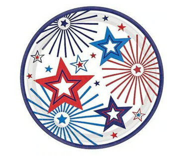 Holiday & Christmas Red White Blue Striped 9" Scalloped Edge Plates Party Disposable Tableware 8 Count