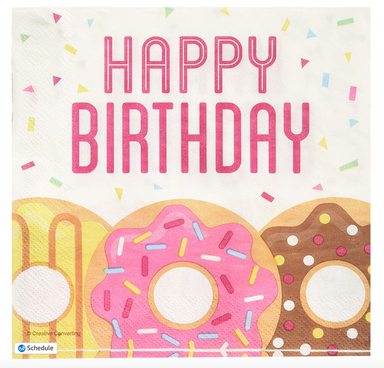 Happy Birthday Donut Lunch Napkin These adorable sprinkle donut napkins feature the words Happy Birthday with colorful donuts. Great for your donu...