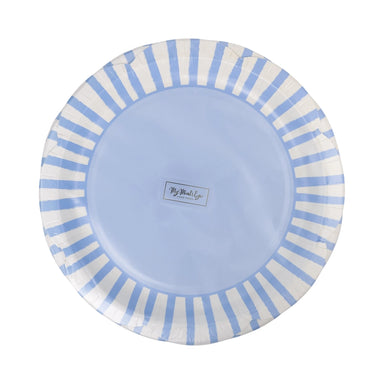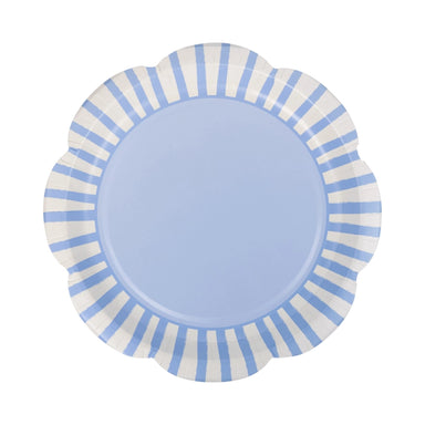 BLUE & WHITE ELEGANT SCALLOP PARTY PLATE These stylish dessert size paper plates feature scalloping and soft blue with white trim and are ma...