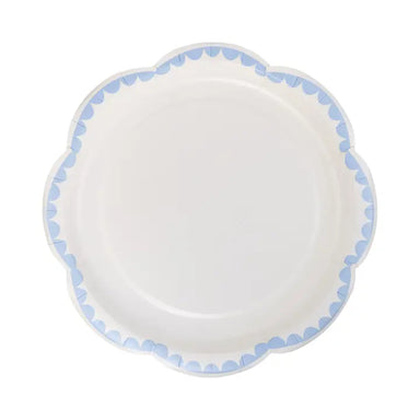 BLUE & WHITE ELEGANT SCALLOP PARTY PLATE These stylish dessert size paper plates feature scalloping and soft blue with white trim and are ma...