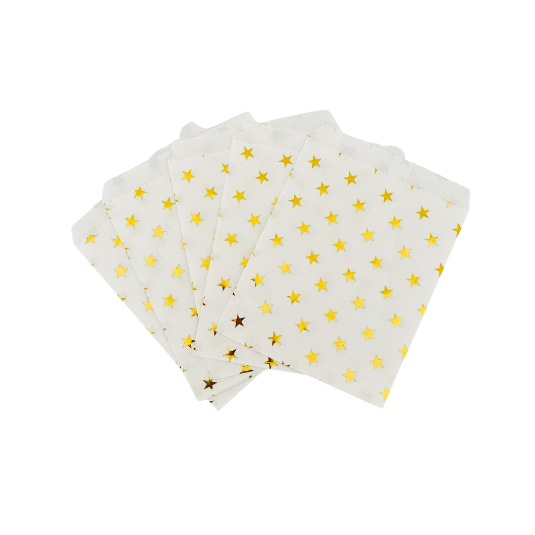 This gold star paper bag makes a great snack bag or favor take away for your guests. Add decor to your food table or send your guests home with a little treat!