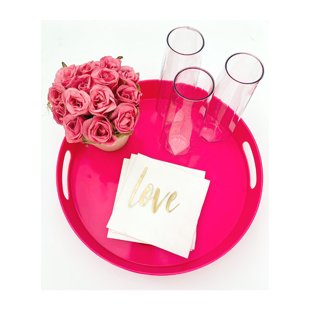 HOT PINK PARTY SERVING TRAY | MODERN DECORATIVE MELAMINE TRAY WITH HANDLES