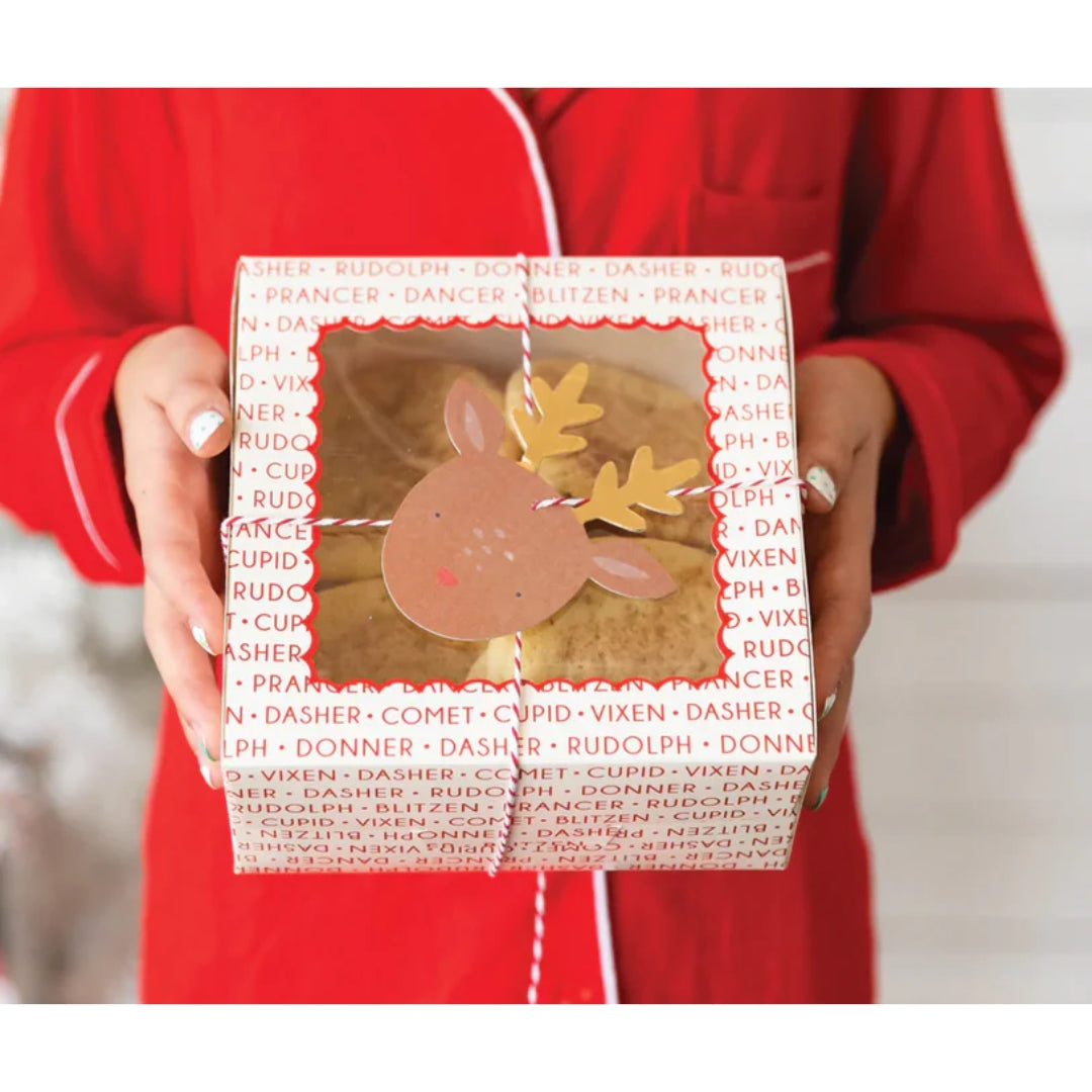 Make your holiday treats extra festive with this Rudolph Reindeer Treat Box Set! Includes 6 paper boxes with clear windows, matching reindeer tags, and twine—perfect for cookies, small gifts, or party favors.
