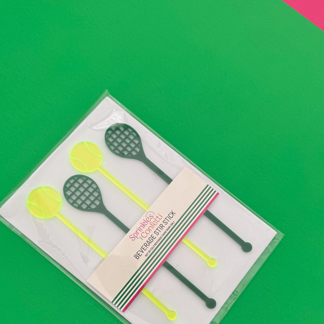 Bright Acrylic Tennis Ball & Racket Stir Sticks for Festive Cocktails